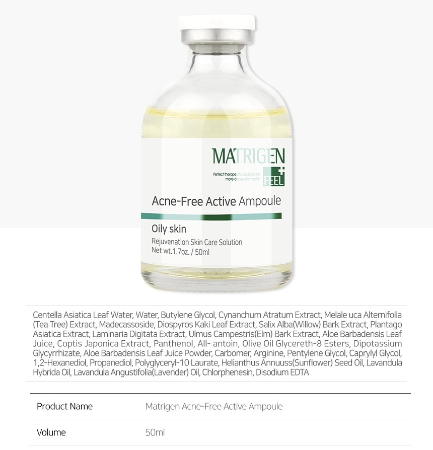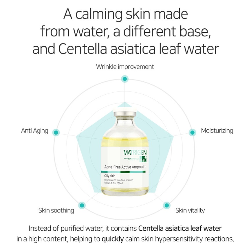 This Matrigen Acne Free Active Contains tea tree extract, madecassoside, and aloe powder, soothes sensitive skin Helps to smooth rough skin; strengthening their protective barrier, keeping the skin supple and healthy.