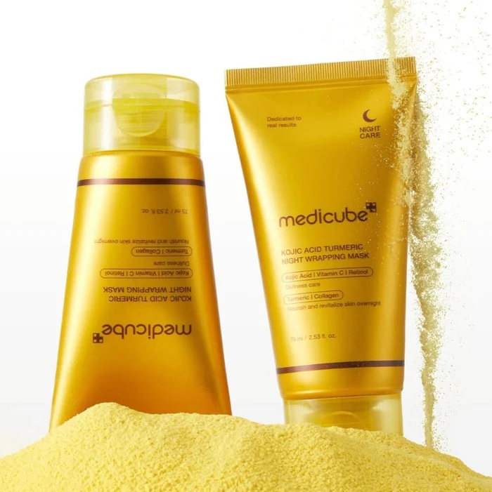 Revitalize your skin with the Medicube Kojic Acid Turmeric Night Wrapping Mask, a unique overnight peel-off treatment designed to brighten, soothe, and impart a radiant, uplifted glow.